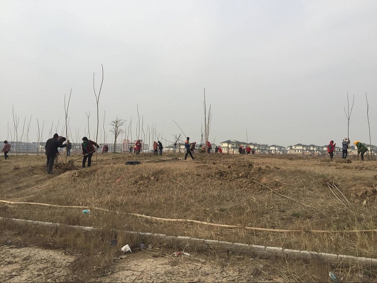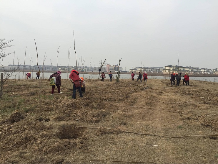 3月29日,南翼绿化公司100余名工人在大棚湖周边开展植树造林活动。 本次植树造林活动是接临港产业区的植树工程,共植6000余株。为了抓时节、赶进度,大家齐心协力、每个人都干劲十足,热情饱满。现场一派繁忙景象,挖坑的、扶树的、培土的、浇水的,虽然大家分工不同,目标却只有一个,注重植树质量,确保树苗的成活率,就是用自己的行动为美化环境贡献一份力量。(王薇)