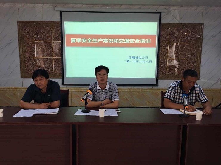 8月8日,日晒制盐公司在生产服务中心针对32名一线班组长和管理人员开展夏季安全生产常识和交通安全专题培训,副总经理古浩光对夏季五防知识和近年来日晒制盐发生的安全事故进行梳理和分析,并提出安全工作常抓不懈,确保下半年安全生产无异常;生产服务中心经理刘文能警醒各位班组长要咬定安全生产、安全出行不放松。会议结束之后,大家观看了交通安全警示片并领取了头盔。(新河制盐邱利民)