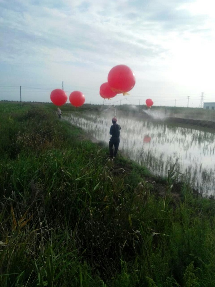 分公司埒南大阜二圩水稻现在正值灌浆期,稻瘟病、纹枯病、钻心虫等各种病虫害随之而来。近日,为减少人为对水稻的损坏,农业分公司利用新型技术,采取气球洒药的方法,对稻田进行喷洒,将防虫治病工作做到实处。(实业公司)