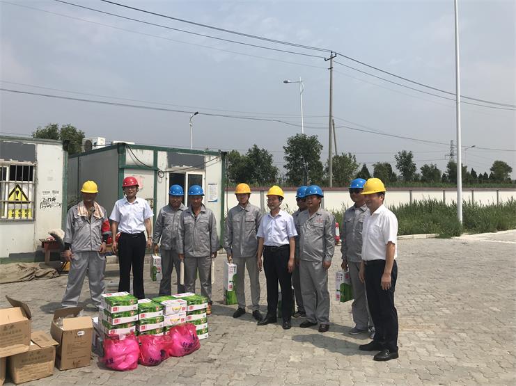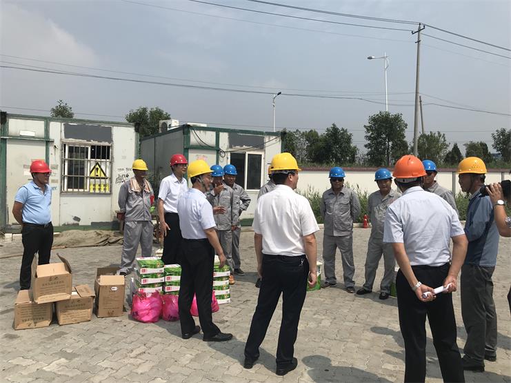8月1日上午,工投集团总经理胡建明、副总经理张其海等一行人在灌西投资公司董事长李国文、党委副书记王宏、分管领导刘殿龙的陪同下来到宵洋物流码头开展“夏日送清凉”慰问活动,为奋战在一线的员工们送来牛奶、绿豆、白糖等防暑降温物品。期间,胡建明总经理等人同宵洋码头的一线员工们亲切交谈,详细询问他们的生产生活情况,同时强调要尽量避开高温时段进行作业。随后集团总经理胡建明等一行人也听取了工作人员讲解现场施工安全和后勤保障的开展情况,并再次要求一定要做好夏季安全生产和防暑降温工作。落实各项防暑降温措施,强化安全责任制,为员工提供良好的安全生产环境。(宵洋物流 张宝同)