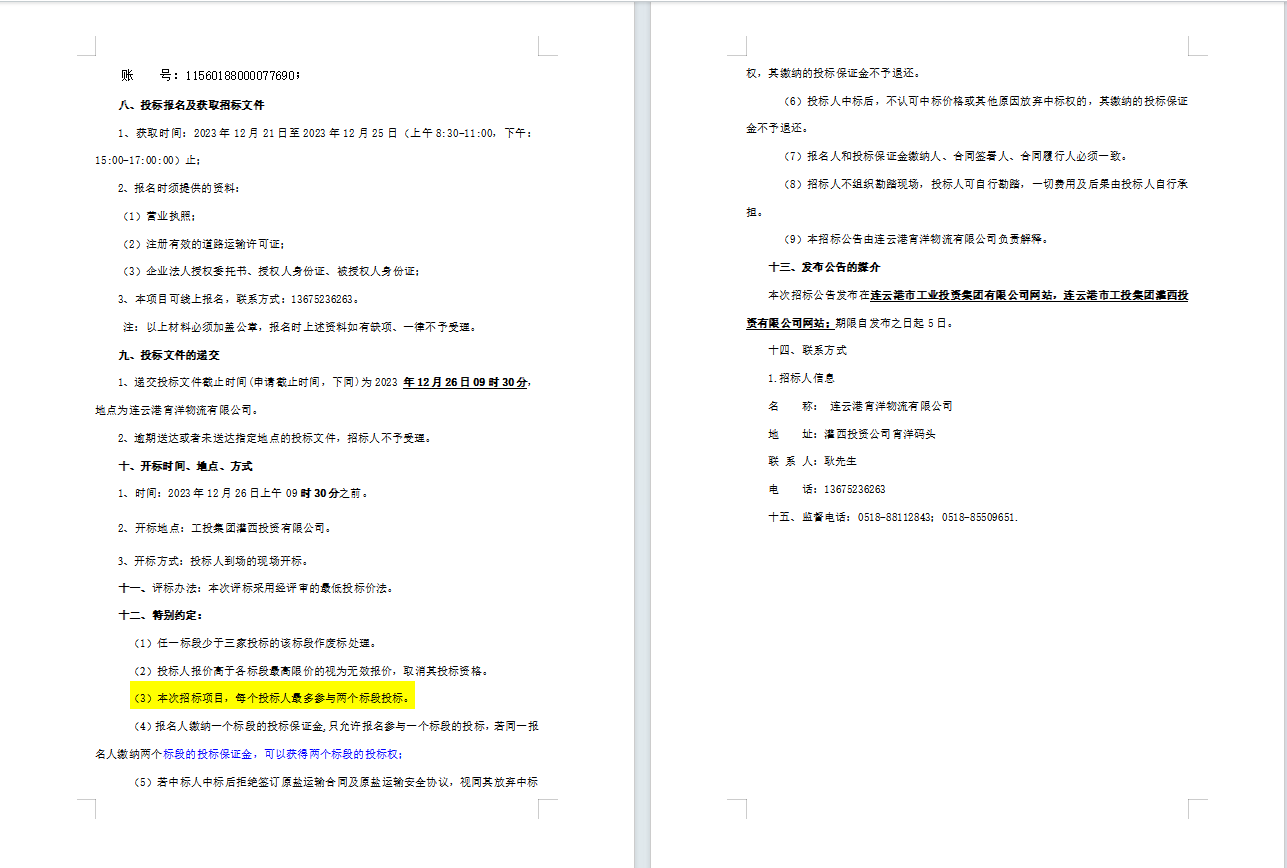 连云港宵洋物流有限公司原盐车辆运输服务业务招标公告