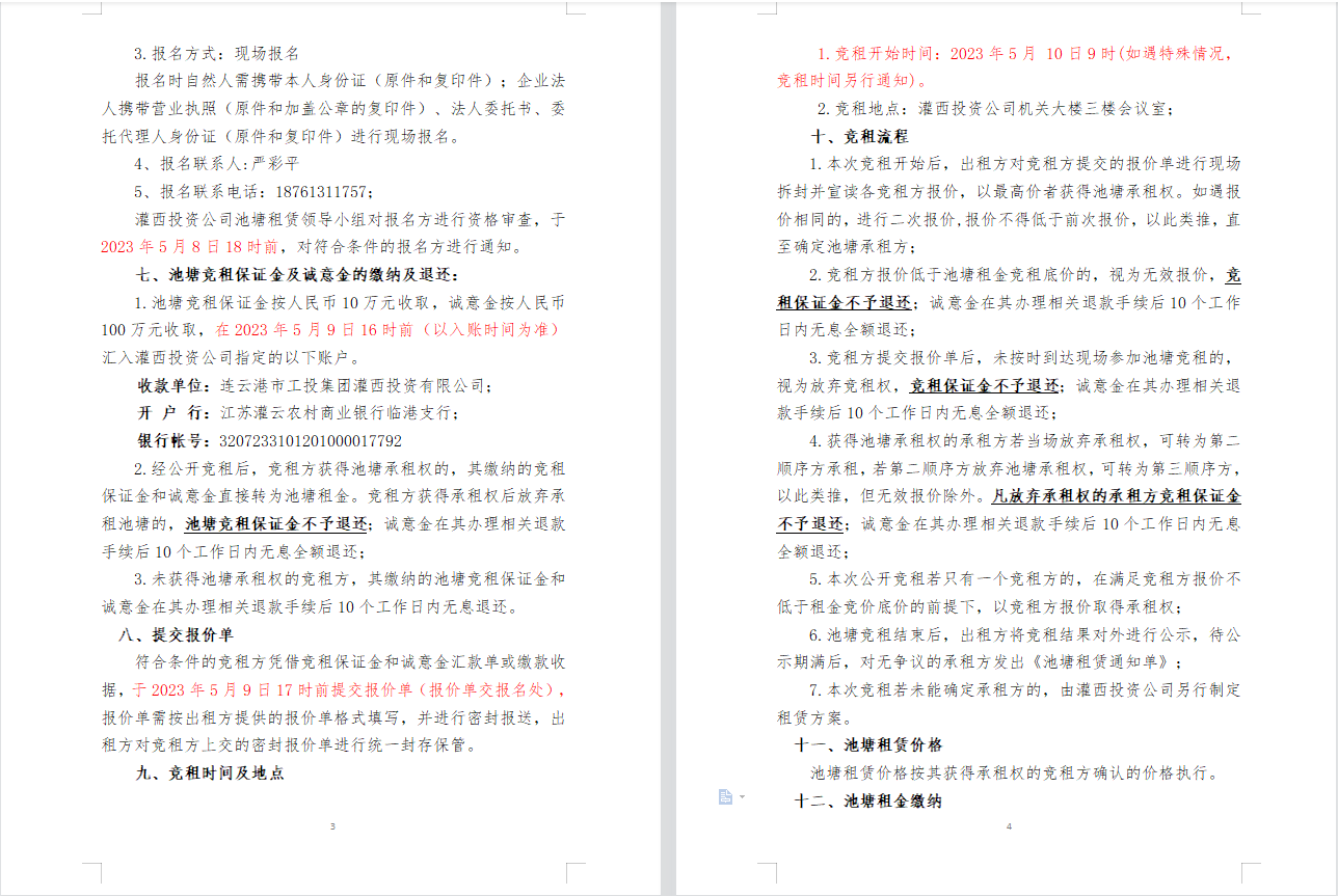 连云港市工投集团灌西投资公司2023年度淡水养殖池塘公开竞租公告