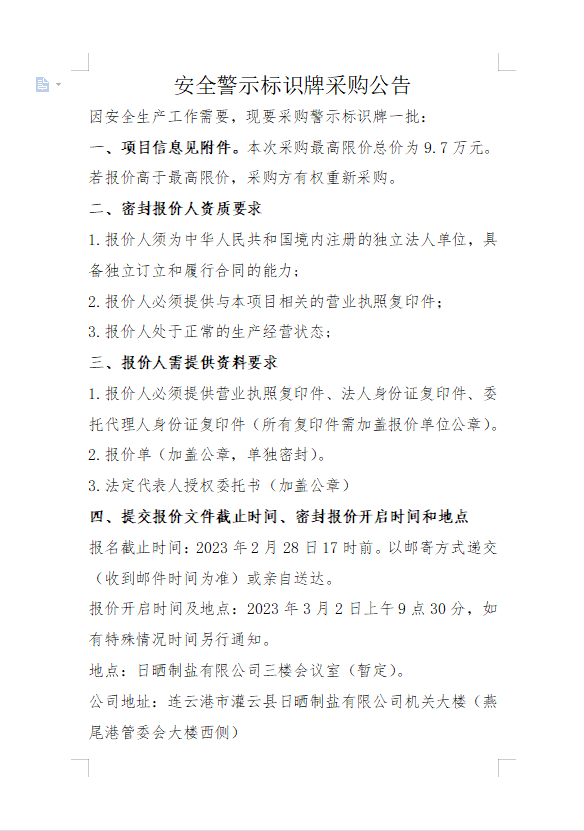 连云港市工投集团日晒制盐有限公司