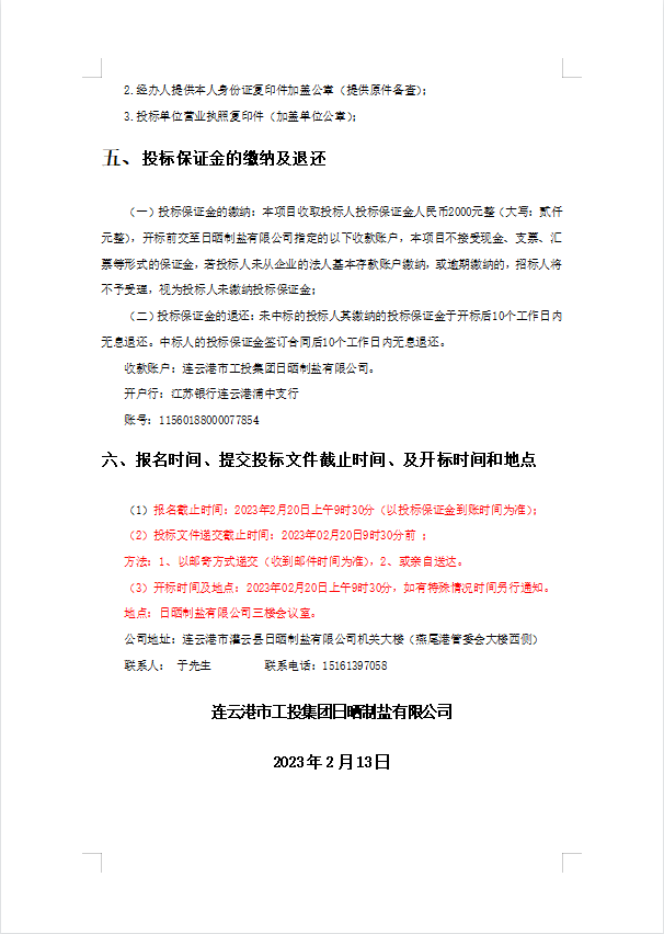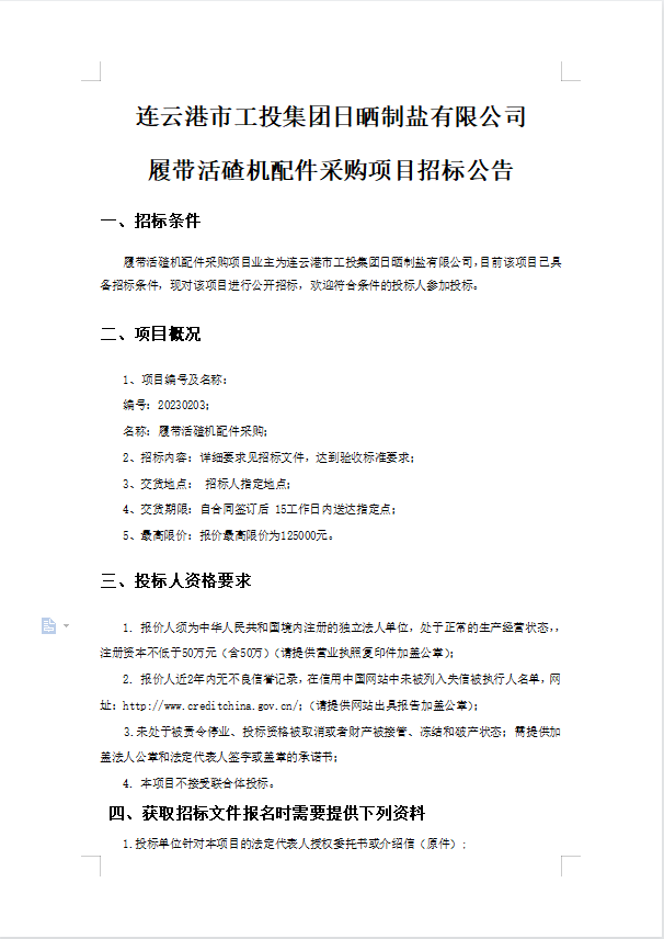 连云港市工投集团日晒制盐有限公司履带活碴机配件采购项目招标公告