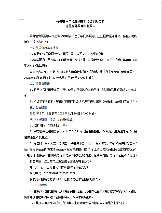 连云港市工投集团灌西投资有限公司