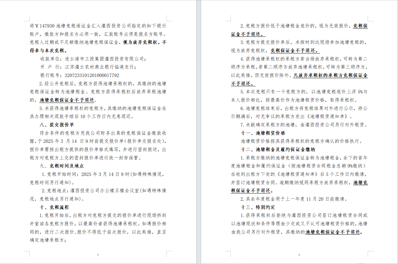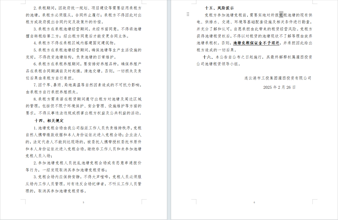 连云港市工投集团灌西投资公司2025年度淡水养殖池塘公开竞租公告