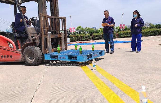 比“四平八稳”。叉车绕桩赛设计了5个的急转弯弯道,主要考核对叉车转弯角度的把握程度及操作的平稳性,极大地考验了选手的行驶技能。比赛现场精彩纷呈,选手们专注投入、熟练操控,充分展示选手扎实的基本功和熟练的操作技巧。
