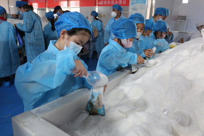小朋友们首先参观了包装盐车间生产线,对制盐过程有了直观的认识,接着来到雪花盐车间体验手工包装,提升参与感、获得感。此次参观体验活动,让小朋友近距离感受家乡的淮盐魅力,很好的传承了淮盐文化。我公司作为省级文明单位,近年来,积极履行社会责任,多次与灌南县尹荡村、连云区大竹园村等单位开展文明共建,争做文明使者,彰显国企担当。(金宣)