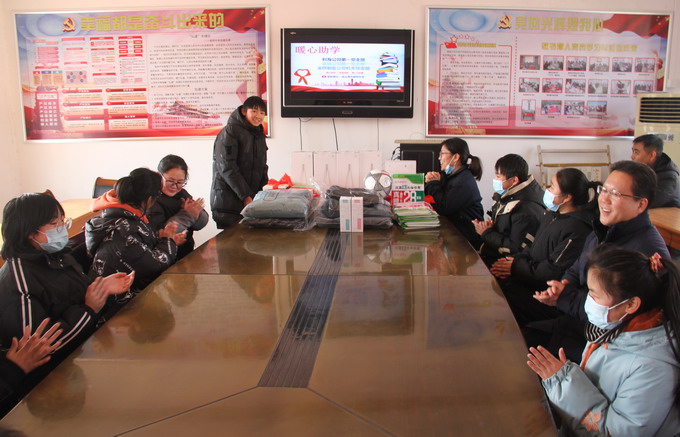 1月13日,我公司与利海公司、氯碱公司到板桥中学开展爱心助学活动。此次活动为我公司机关党支部与利海公司第一党支部、氯碱公司第一党支部联合开展,三个支部组织党员干群自发捐款,为板桥中学的学生们购买了书籍、护眼台灯、衣服、水杯、足球等学习和生活用品。板桥中学的刘校长和受助学生们对三个支部联合开展的此次爱心助学活动表示了感谢,受助学生纷纷表示,将努力学习,用优异的成绩回报社会,回报资助过他们的人。(机关党支部)