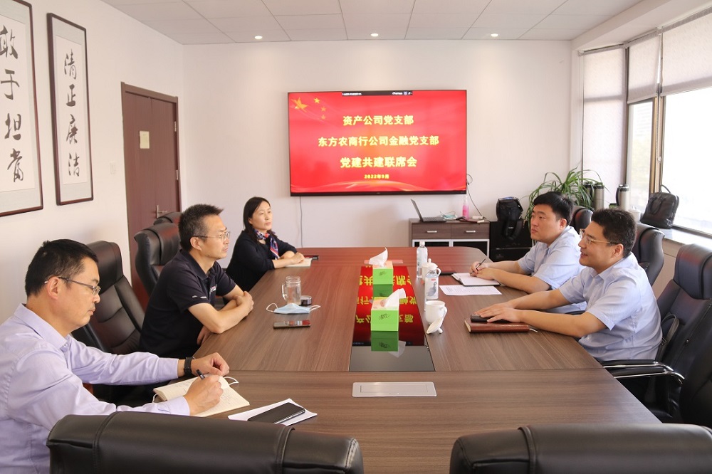 为扎实推进“三联三促”书记项目,发挥党建引领促业务交流提升的作用,9月22日上午,在格斯达公司会议室,资产公司党支部与东方农商行公司金融党支部开展了以“党建业务相融合,互促进步共发展”为主题的党建共建联席会,会上,连云港市东方农商行副行长徐明亮代表公司金融党支部就与资产公司党支部开展探索合作共建等方面进行了座谈。金融板块党支部书记、董事长徐兵,党支部副书记副总经理王顺友,副总经理丁丹阳参加会议