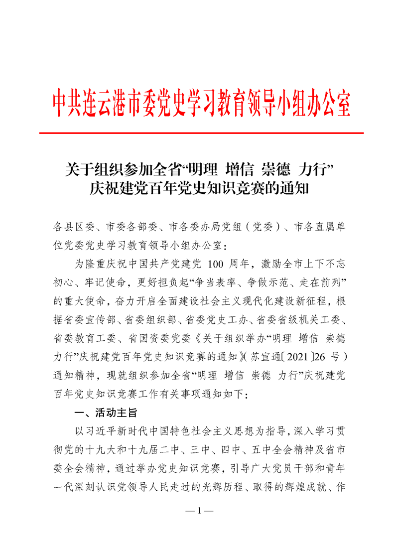 关于组织参加全省“明理 增信 崇德 力行” 庆祝建党百年党史知识竞赛的通知