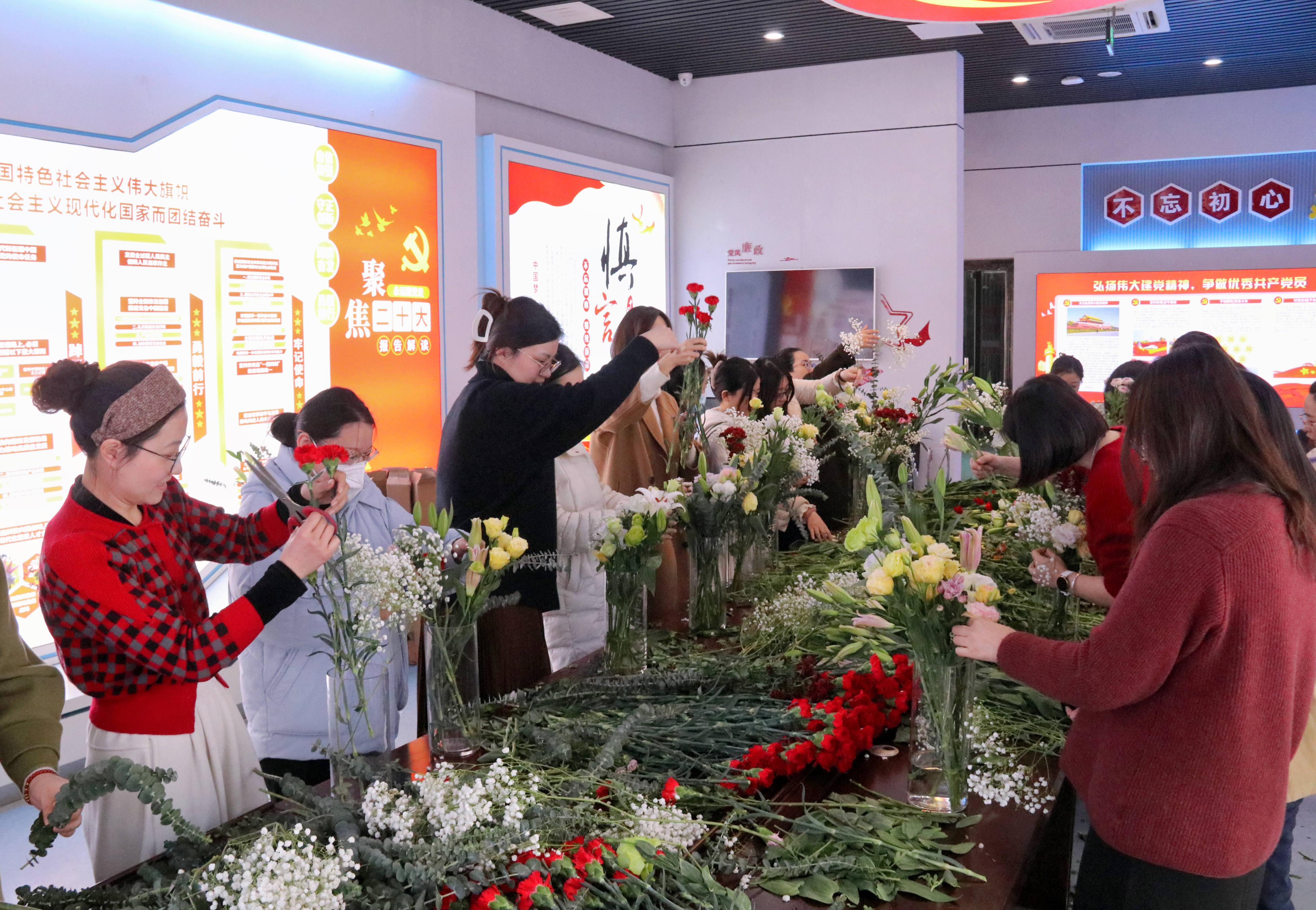 为庆祝“三八”国际劳动妇女节的到来,进一步丰富金融板块女职工精神文化生活, 激励女职工持续在岗位上建功立业,近日,公司工会开展“巾帼绽芳华 花香悦生活”庆三八主题插花活动。