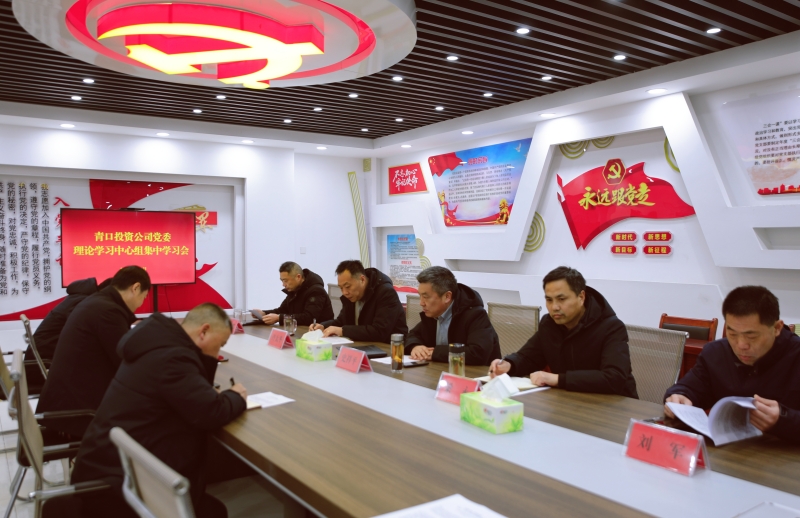 2月29日上午,青口投资公司召开党委理论学习中心组学习会,深入学习集团公司全面从严治党工作报告、集团公司二届五次职代会工作报告以及丁锐董事长讲话精神。公司党委书记、董事长、总经理史祥平主持会议。