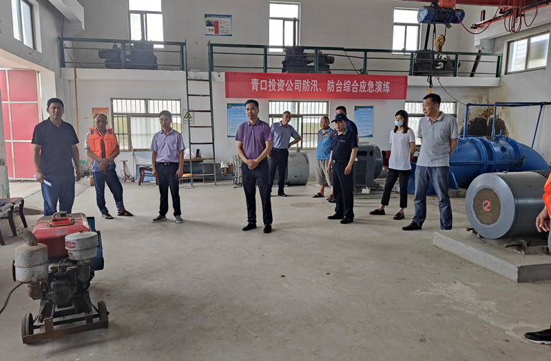 会前,公司组织开展了防汛、防台综合应急演练,模拟了遭遇强台风和特大暴雨,河道水位超过警戒线,接值班人员报告后,启动3级应急预案,防汛领导小组分赴附河闸、三洋扬水站、后小坨强排站,督导应急处置,在统一指挥下开闸排水的演练。现场还模拟了突然停电,启动闸站停电突发情况应急预案,启用备用电源的演练。