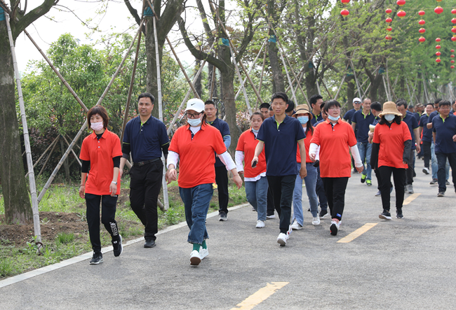 4月27日下午,青口公司工会组织在岗职工100余人来到青口潜园进行了一场五公里职工健步行比赛。