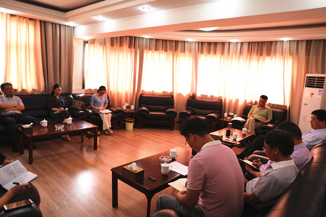 8月8日上午,开发区社会事业局局长苏月虹、猴嘴街道党工委副书记、办事处主任赵士安一行4人到我公司专题调研青口盐场社会职能移交事务。公司董事长、党委书记胡传法,总经理史祥平陪同调研。