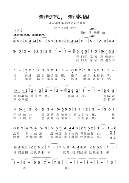 集团公司企业歌曲《新时代,新家园》由我国著名作曲家王咏梅作曲,我国著名歌唱家祖海、王宏伟演唱,亚洲爱乐乐团演奏,爱乐乐团艺术总监、首席指挥黄立杰指挥。