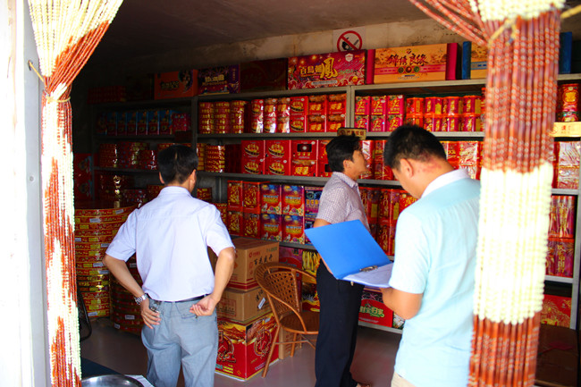 9月1日上午,公司安全技术部对全场范围内6家烟花爆竹经营店进行安全生产大检查,对检查中个别店铺存在的轻微超量储存现象提出立即整改要求。(王伟)