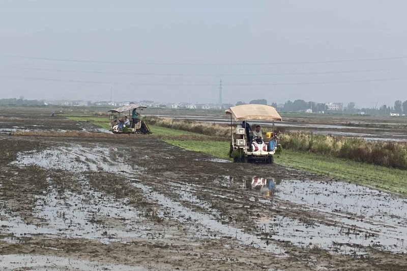 近日,大新农场抢抓有利天时,与农科院合作的新品种水稻启动插秧作业,机器手正熟练地操作插秧机在稻田里穿梭,一撮撮青翠的秧苗被整齐有序地插在水田里,呈现出一幅绿色生态画卷。(王璐)