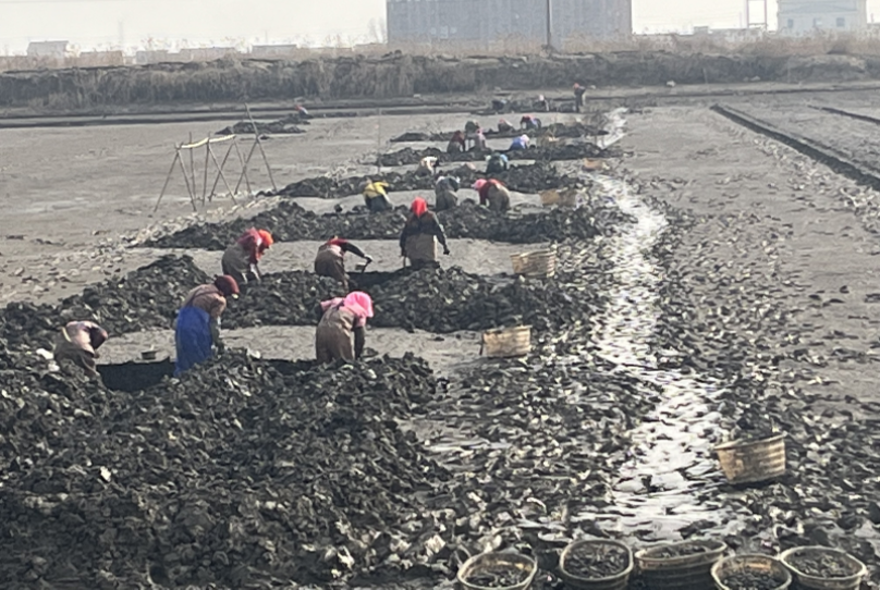 近日,黄沙分场部分池塘对已达到规格的缢蛏开始起捕销售,为新一年的养殖生产、投放苗种做好准备。(黄沙分场)
