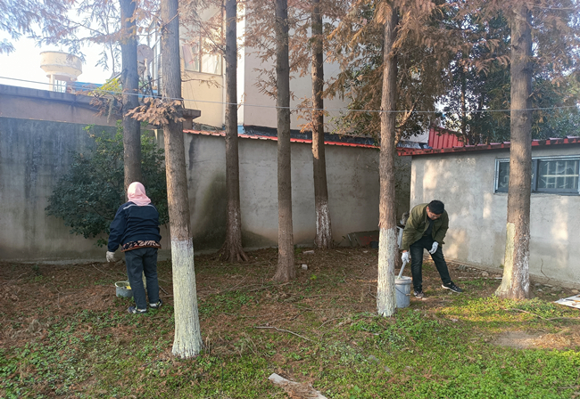 近日,泰祥公司组织员工对场区内花草树木采取涂白除虫措施,既能够杀菌除虫,又提高树木抗冻能力,也能够有效避免因昼夜温差大而导致的树干冻裂现象。 目前,树木涂白工作正在有条不紊地进行。(赵新勇)