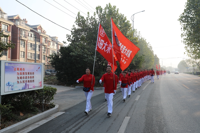10月20日清晨,米业营销公司联合海州区微马队共同开展健步走活动,吸引了共三百余名健身爱好者参与其中。本次活动旨在进一步宣传提高“盐田玉”品牌的知名度,让广大市民在积极运动的过程中认识“盐田玉”、了解“盐田玉”,拓宽“盐田玉”宣传渠道,提倡积极健康的生活方式,倡导广大市民吃优质大米,过健康生活。本次健步走从海州区石棚山景区广场出发,内环朐阳门、海州古城、秦东门大街返回,全程3.6公里。 (顾 益)