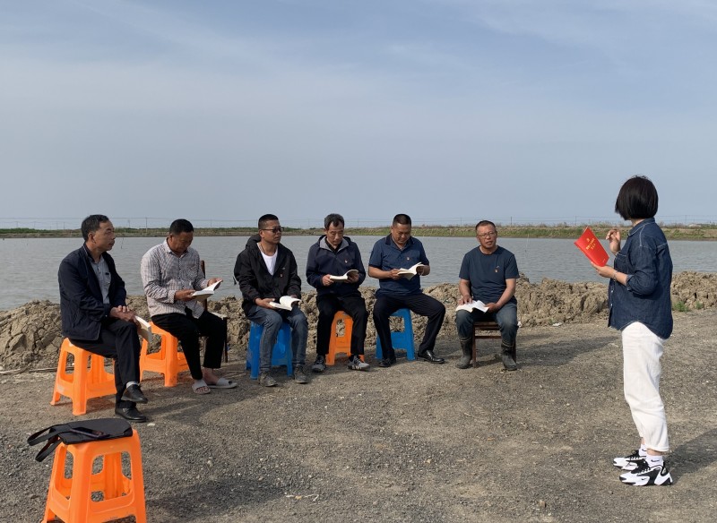 近日,在三洋分场生态养殖示范岗,支部党员与养殖户围坐在一起,共同学习党的二十大精神,并针对当前养殖情况交流经验,提升养殖技术水平。