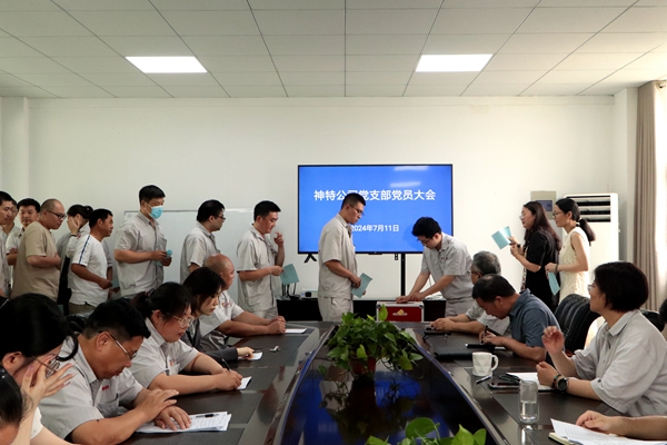 7月11日上午,神特公司党支部召开党员大会,公司全体党员参加会议,讨论和表决王勇等8名预备党员转正事项。会议由公司党支部书记严成主持。