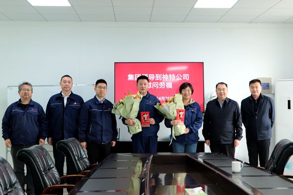 戴主席为两位市劳模送上鲜花和诚挚的节日问候,并进行亲切座谈,了解劳模们的工作、生活情况,倾听他们的心声和意见,感谢他们长期以来为企业发展作出的贡献,希望他们以劳模精神带动团队和身边人,发挥好示范引领作用,为神特公司发展提供源源不断的活力和动力。(神特宣)