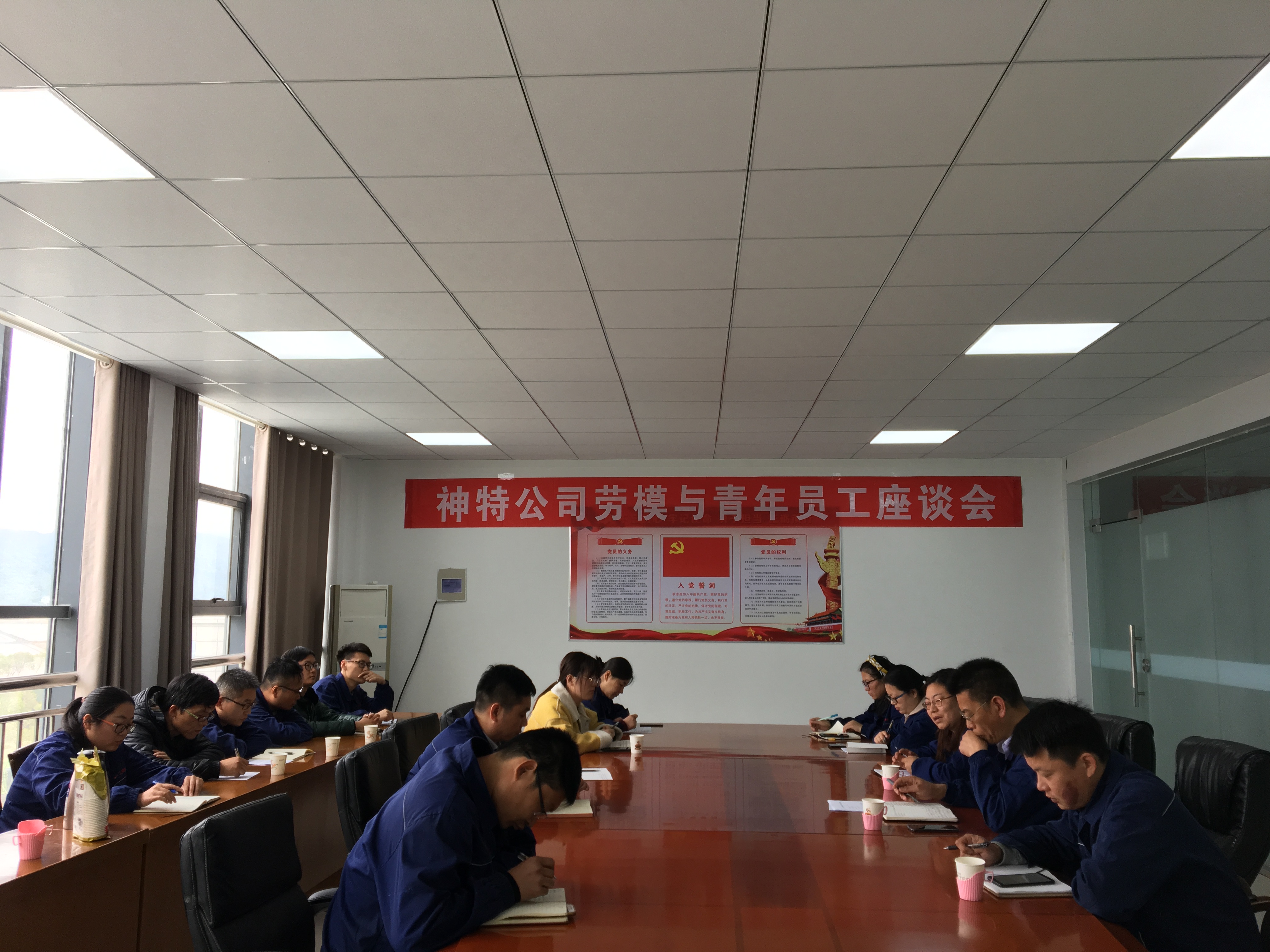 4月29日下午,公司在三楼会议室召开劳模与青年员工座谈会,来自公司生产一线、机关部门的2名市劳模和15名优秀青年代表参与了座谈。工会主席袁忠主持了会议。