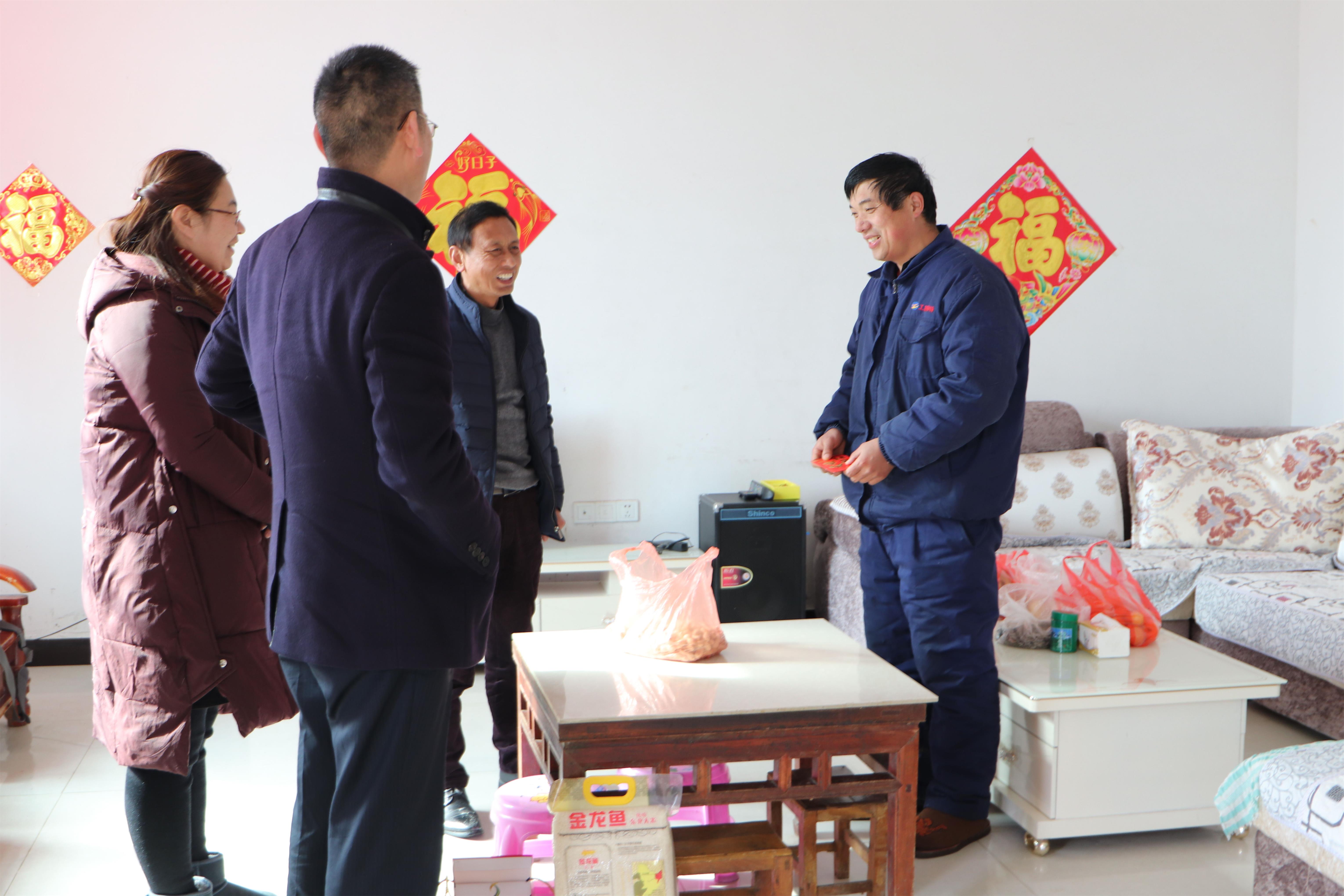 131日下午,公司党支部书记邹德兵、副总经理王爽芳、工会主席袁忠一行走进困难职工孙英山等家中,为他们带去节日的祝福和公司的关怀。