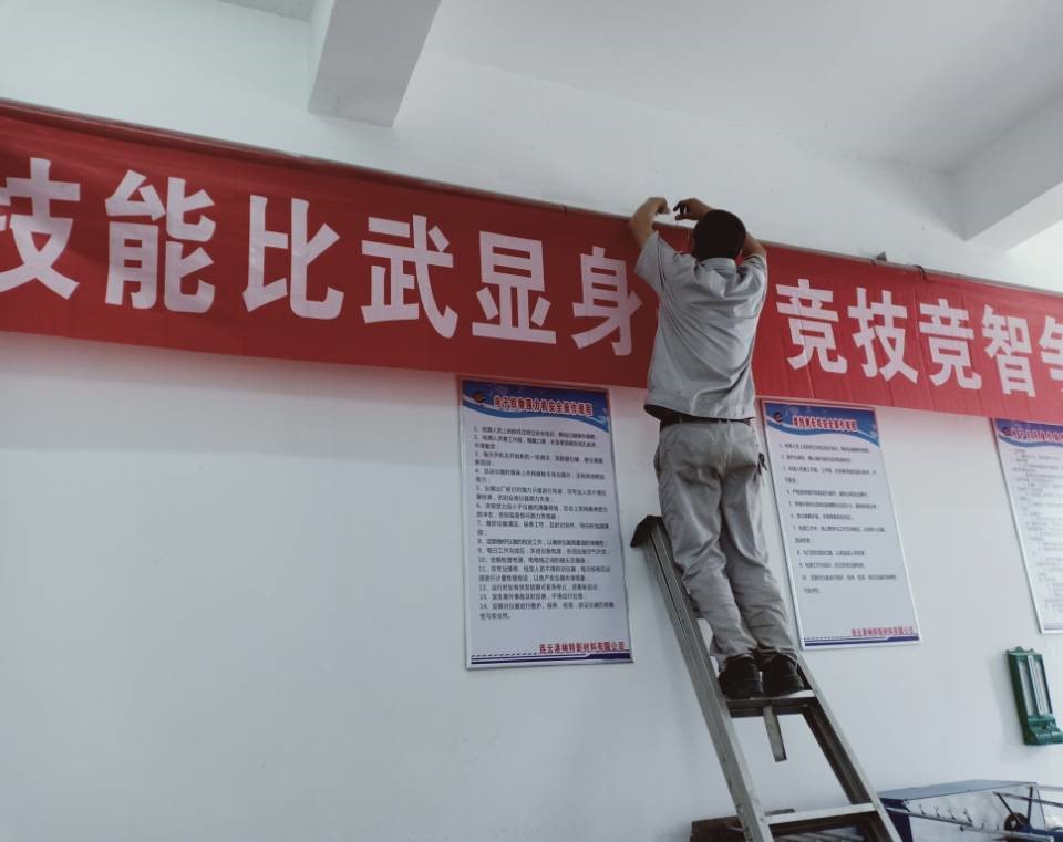 为营造技能大赛氛围,7月7日上午,品质管理部特地请维修组件班组朱师傅、王师傅在品质管理部办公区挂上宣传横幅。维修组件班组的两位师傅不怕麻烦,多次调整横幅的角度,力求做到尽善尽美,为营造技能大赛氛围贡献自己的力量。