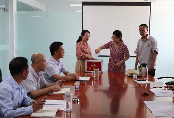6月11日下午,公司党支部召开党员大会,全体党员出席会议,讨论和表决孔令梅等4名发展对象入党事项。会议由党支部书记邹德兵主持。