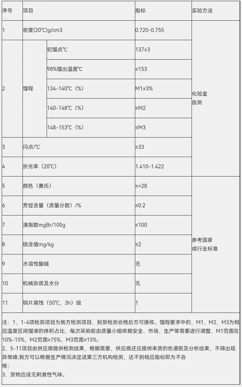连云港神特新材料有限公司招标文件编号:STZB-202304 碳氢清洗剂(轻质白油)技术指标确认: