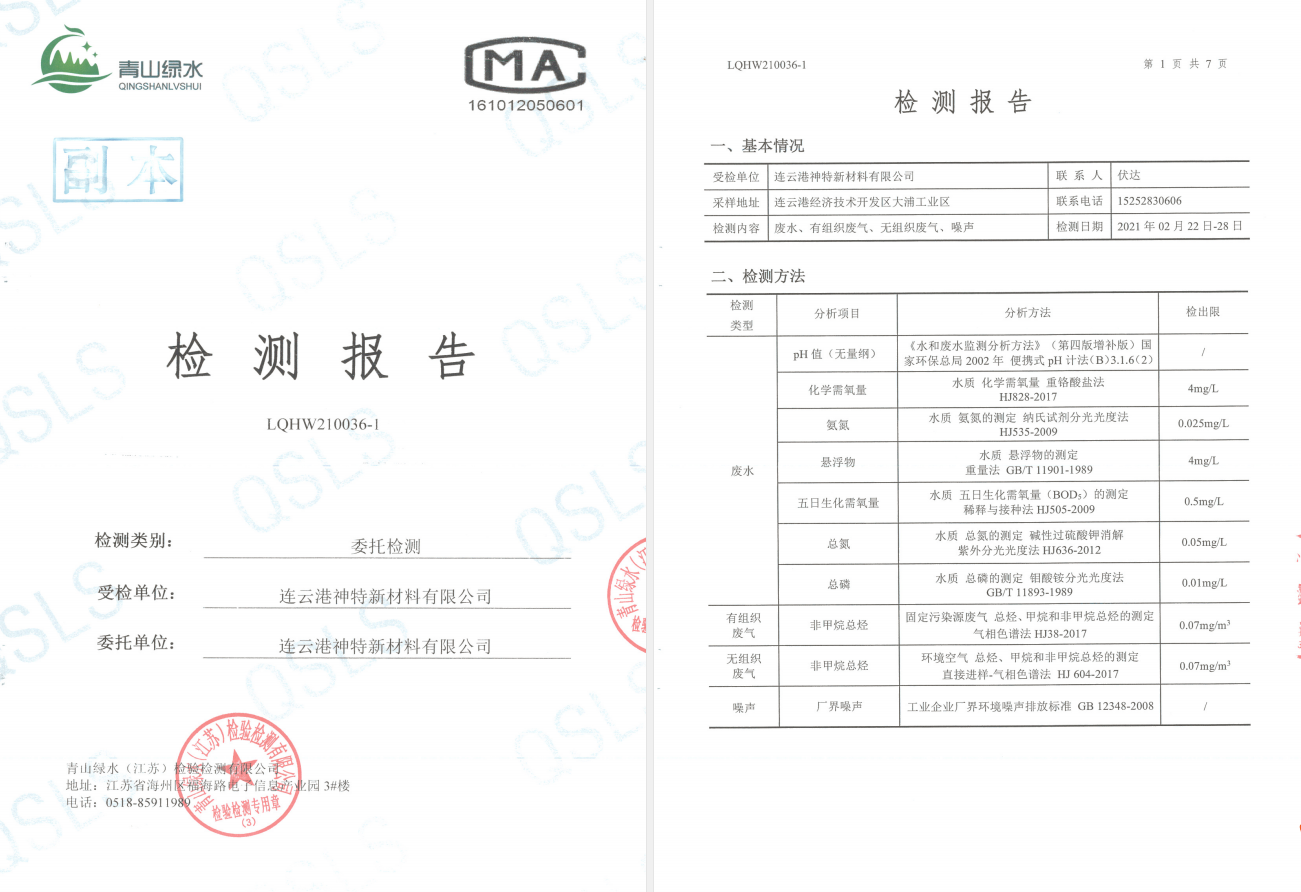 神特公司检测报告公示