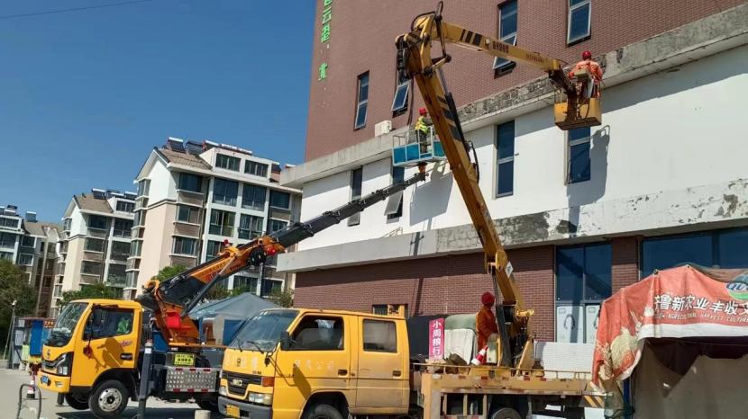 在昌圩湖邻里中心外墙修缮施工现场,瓦工粉刷工齐上阵,这个工程属于兄弟单位的“安全隐患整治”工作。一直以来,翔立分公司除了承接开发区市政工程外还承担着公司内部工程。为应对零小工程品种杂的特点,培养一技多能的多面型人才和全方位多角度发展已经成为翔立的特色!
