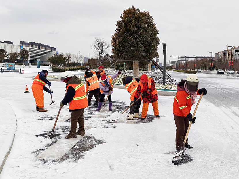 受冷空气影响,1月31日晚,港城突降瑞雪。公司第一时间启动扫雪除冰应急预案,上下联动,道路保洁、市政养护、后勤保障等战线的干部职工全员出动,奋战在扫雪除冰第一线,突出重点区域、重点路段、桥梁涵洞清扫积雪,保证人们出行方便安全,保障园区交通顺畅。