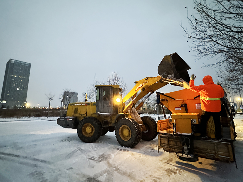 此次扫雪除冰行动,采用人机结合方式,调派铲雪车、装载机等机械设备,对东方大道、黄海大道、花果山大道、242省道等主要干道人行便道、交叉路口,新海连大厦、火车站东站等重要地段的路面冰雪进行突击清理;对各条干道的桥面及马山立交桥、新光路下穿立交等坡度路面铺洒氯化钙除雪剂融化冰雪。
