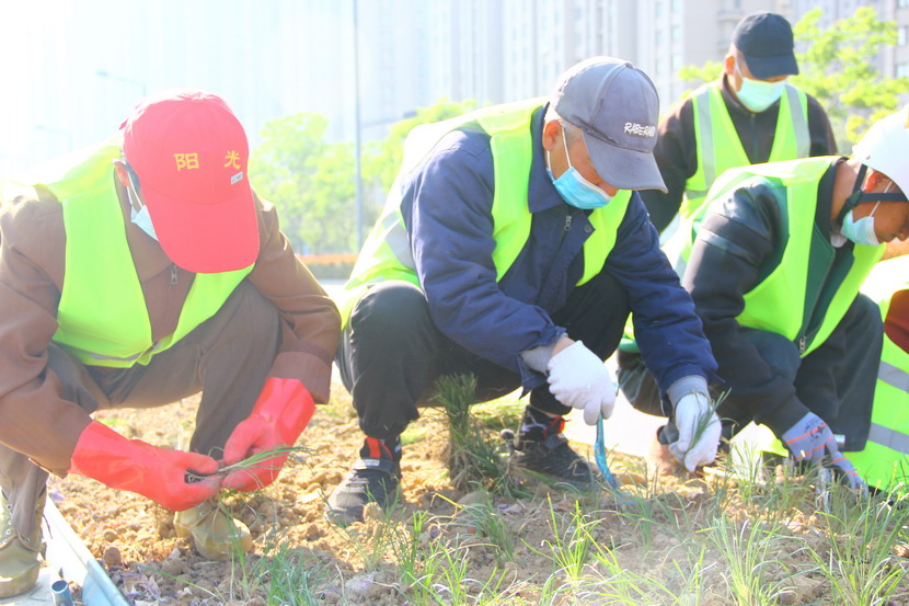 海州湾党支部组织党员、职工20余人,从4月29日开始,全力支援公司绿化工程,党员们自带工具、自制工具,发扬一不怕苦、二不怕累的战斗激情,每天工作超过10个小时,直到带班组长强制命令还要完成最后一块责任区才罢手。