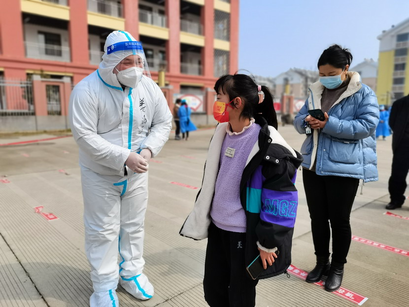 姜海洋:“小朋友,请把口罩戴好,一定要戴到鼻子上面哦!”