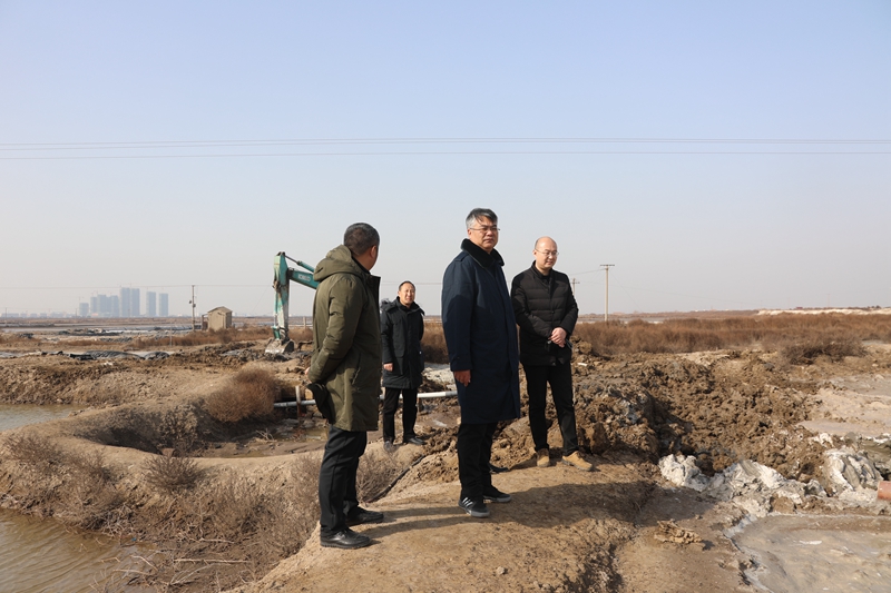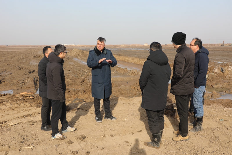 1月13日上午,投资公司董事长、总经理王德志,总经理助理卞霄一行分别来到海州湾公司开太班组转型项目和海滨班组原料水存储池项目施工现场调研指导。