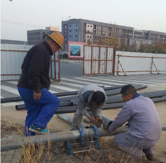 镜头三:东输灌西的钙液管道因使用年久老化,在新东方大道路下的穿越自然损坏,为了不影响钙液销售,抢修工作正“马不停蹄”!