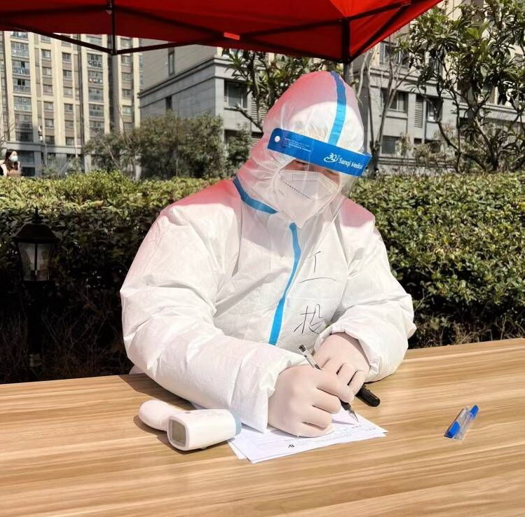 3月12日,社区统一安排,换了岗位,经过岗前细致培训后,负责信息登记、测试体温、发放检测卡,服装也由一次性塑料服换上了“大白服”。服装升级了,说明防护级别也升级了,他二话没说,服从安排,迅速到岗。“您好,请在这边登记信息,测量一下体温”,这是他每天重复最多的话,他穿着密闭的防护服,连上一趟卫生间都成了一件很奢侈的事情,为了节约医疗物资,早晨不敢多喝水,工作期间不喝水,直到检测结束才和其他工作人员一起吃饭。有人问:“这项工作有风险,怕不怕?”他说:“怕,当然怕,但和身边的医护人员比起来,我这点真不算什么,向他们致敬!”目前,他所在小区已经进行了13次全员核酸检测,他每次早上7点到岗,下午2点左右结束,脱下防护服后背都是湿漉漉的。