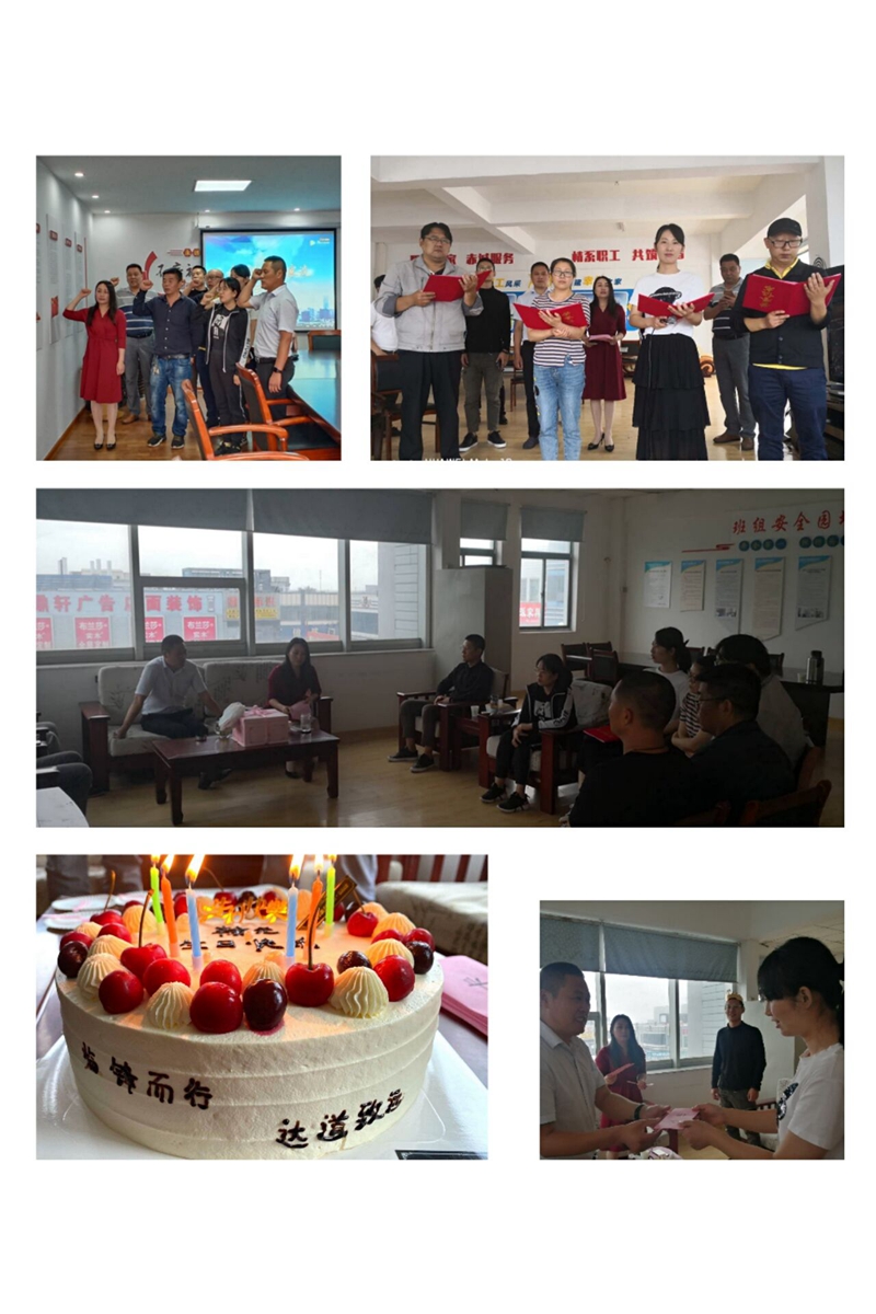 书记致辞。为党员同志送上暖心祝福话语,向职工群众提出争先奋进希冀,替临达公司树立更进一步目标。重温誓词。进一步增强党性,牢记党的宗旨,恪守党的纪律,坚定理想信念,充分发挥先锋模范作用。赠送贺卡。书记亲手为党员同志们制作贺卡、写下寄语,送到党员同志们的手中。集体诵读。全体职工高声朗诵了诗词《我的祖国》,激发爱国热情,陶冶爱国情操。活动最后,公司工会为职工精心准备了丰盛的生日餐,让职工深深体会到来自“娘家人”的温暖。