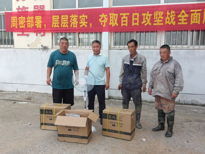 近期,海州湾工会协同公司一起深入班组开展“安全生产百日攻坚大行动”,认真排查生产作业场所及职工值班室安全隐患。在排查过程中,发现值班室的吊扇十分陈旧,运转时有晃动的现象,存在风叶脱落的危险,且风力微弱,达不到良好的降温效果。工会现场拿出解决方案,决定采购一批落地扇送入班组,为职工送去一丝清凉。