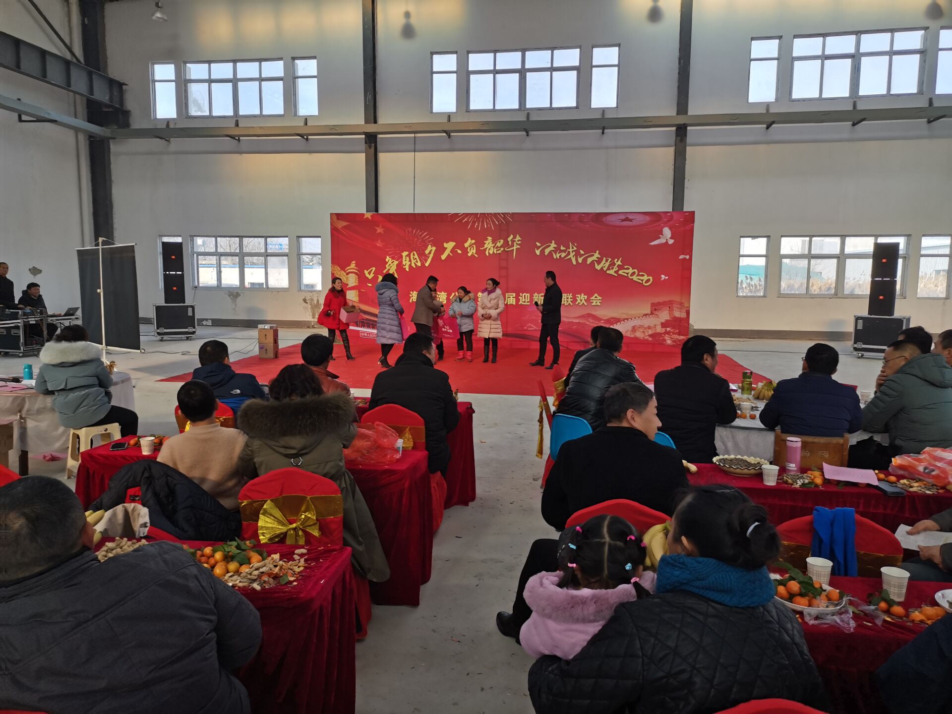 1月20日下午,海州湾公司9#标准化厂房传来阵阵欢歌笑语,来自各个岗位的员工为大家献上了一台精彩的迎新春联欢会。小合唱、诗朗诵、幸运抽奖、互动游戏……节目一个接着一个,舞台上,演员们的表演精彩纷呈;舞台下,观众们的掌声一阵高过一阵。
