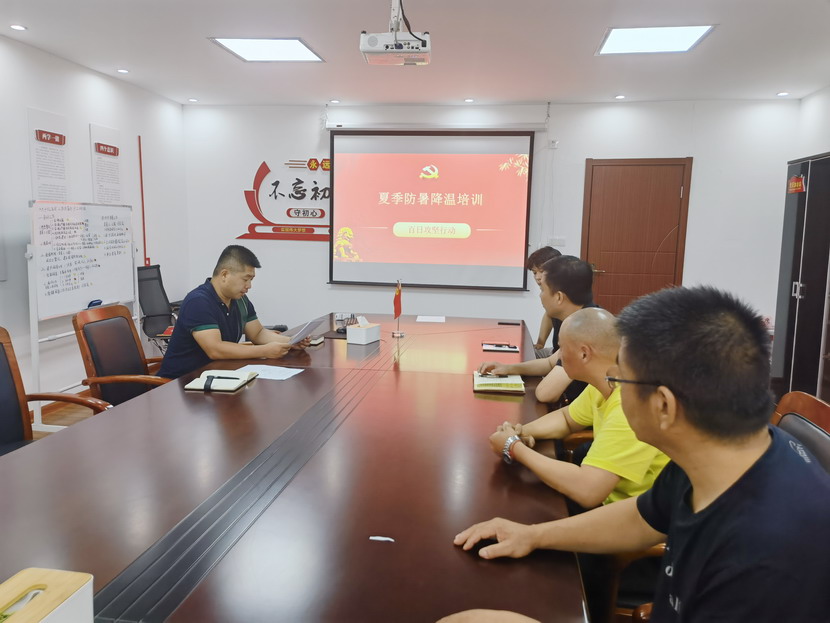 2022年8月8日上午,针对近期高温黄色预警频发,临达分公司立即进入应急响应状态,组织全体员工在三楼会议室开展预防中暑和热射病防治培训活动。
