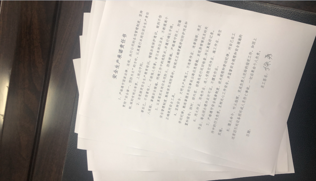 会后,逐步将安全承诺书和安全知识答卷发放至每个班组、滩头,共计28份。