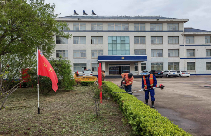 6月9日,该公司“党员突击队+绿化养护技术骨干”20余人联合组队,充分发挥绿化管理专业技能优势,为板桥边防派出所内绿化带进行清理修剪。工作现场,针对实际情况制定科学修剪方案。全体队员手拿割灌机、绿篱机、一致排开,利用剪枝工具对树枝进行修剪,并对剪下的残枝和绿化带的杂草进行清除。经过半天的辛勤劳动,修剪草坪500平方米、海桐绿化带200余米及清理杂草20余车……。警营内绿化带,树木线条变得流畅、草坪平整干净,整个环境面貌焕然一新。