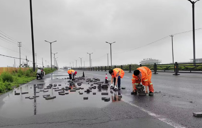 中午12时,保洁分公司接到徐圩城建应急处理电话,港前大道向南处近2000多米长路面存在大量抛洒砖块,对过往车辆造成极大安全隐患,极易引发安全事故,严重影响行车安全。该分公司了解情况后,立即组织安排突击队员进行及时清理。现场,3名身着橘红工作服的养护人员首先摆放了安全警示锥,随后徒手进行抛洒物的捡拾工作。经过3个多小时的努力,累计搬运砖块近800多块,及时消除了安全隐患。该路段又恢复了往日的干净整洁,车辆通行安全畅通。(杨波)